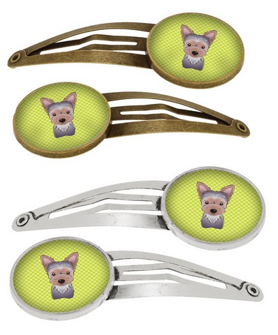 Carolines Treasures BB1294HCS4 Checkerboard Lime Green Yorkie Puppy Barrettes Hair Clips, Set of 4