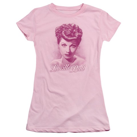 Trevco Lucille Ball-Pearls Short Sleeve Junior Sheer Tee, Pink - Large
