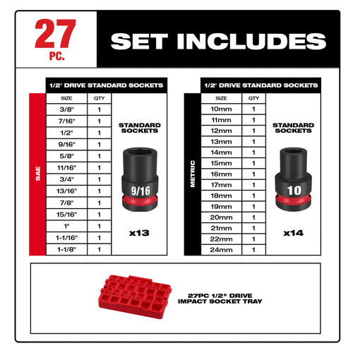 Milwaukee 49-66-6819 SHOCKWAVE Impact Duty Socket 1/2" Dr 27PC SAE TRAY Set | Milwaukee