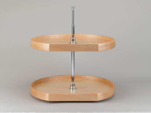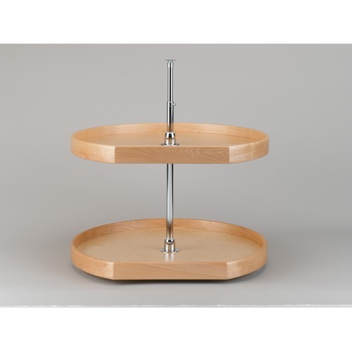 The Rev-A-Shelf LD-4NW Lazy Susan Natural Wood D shape is the most unique wood lazy susan, made of natural wood. Features 2.37" steam bent rim, 0.62" thick maple tray bottom, doweled butt joint and aluminum bearings. Available in double shelf with 26" - 31" tele shaft.