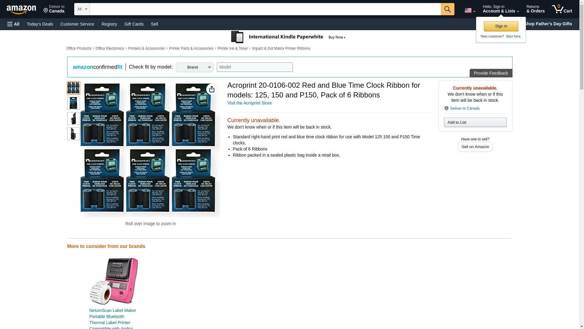 - Genuine Acroprint replacement ribbon for use with Acroprint Model 125 and Model 150 time recorders
