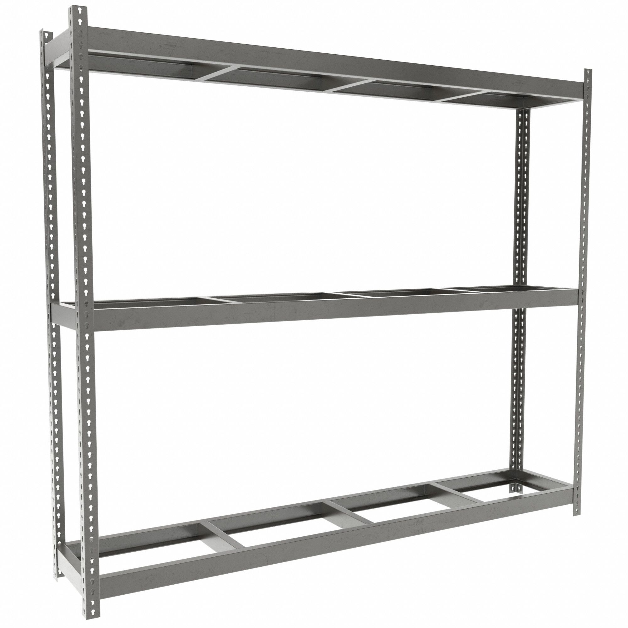 - Boltless Shelving: Starter, Heavy-Duty, 96 in x 18 in, 84 in Overall Ht, 3 Shelves, Open This