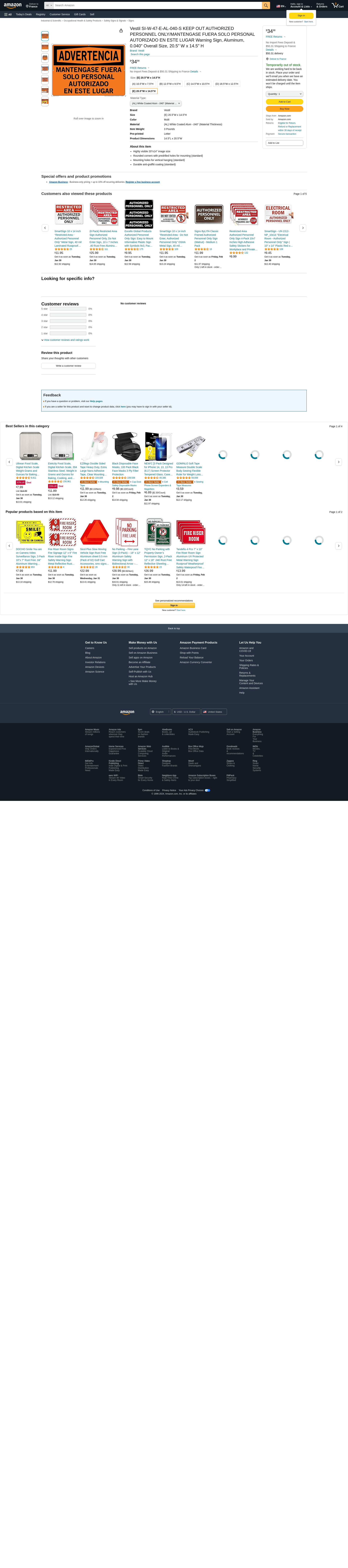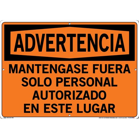 Vestil SI-W-47-E-AL-040-S KEEP OUT AUTHORIZED PERSONNEL ONLY/MANTENGASE FUERA SOLO PERSONAL AUTORIZADO EN ESTE LUGAR Warning Sign, Aluminum, 0.040" Overall Size, 20.5" W x 14.5" H