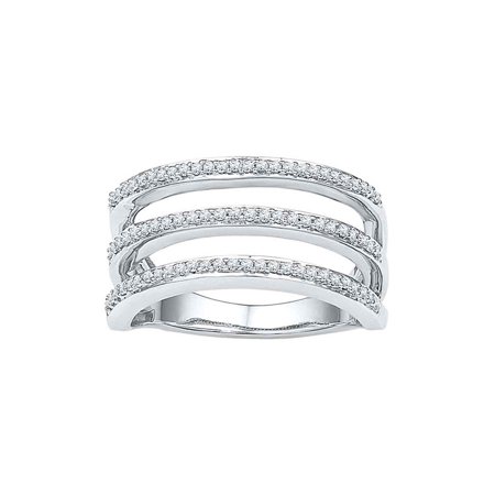 <ul> <li>10kt White Gold</li> <li>1/4 Carats total weight</li> <li>Width: 10.2 mm (.4 inches )</li> <li>4.84 grams (approximately)</li> <li>Ring size selectable. All diamonds are natural and conflict-free in origin.</li> </ul>