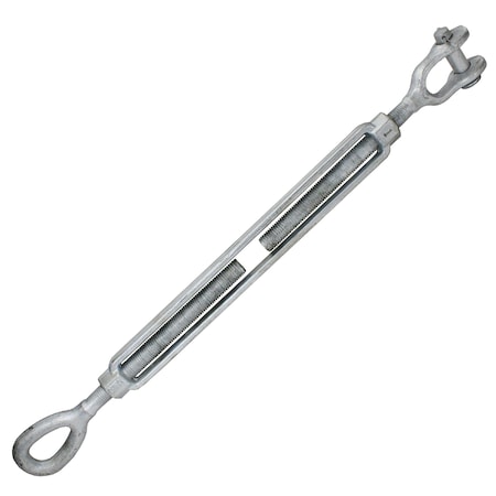 US Cargo Control jaw and eye turnbuckles are hot dip galvanized for durability and weather resistance. Our heavy duty turnbuckles are made for in-line or straight pull applications only. This galvanized turnbuckle features a jaw on one end which is fitted with a nut and bolt, or pin and cotter pin assembly. The other end has an elongated eye to maximize ease of attachment and minimize stress on the eye. Turnbuckles are measured by the diameter of the bolt and the length of the opening of the turnbuckle body. The overall length of this turnbuckle will be longer than the stated length, as that only pertains to the opening of the turnbuckle body. This turnbuckle is designed to ASTM F1145 specifications.