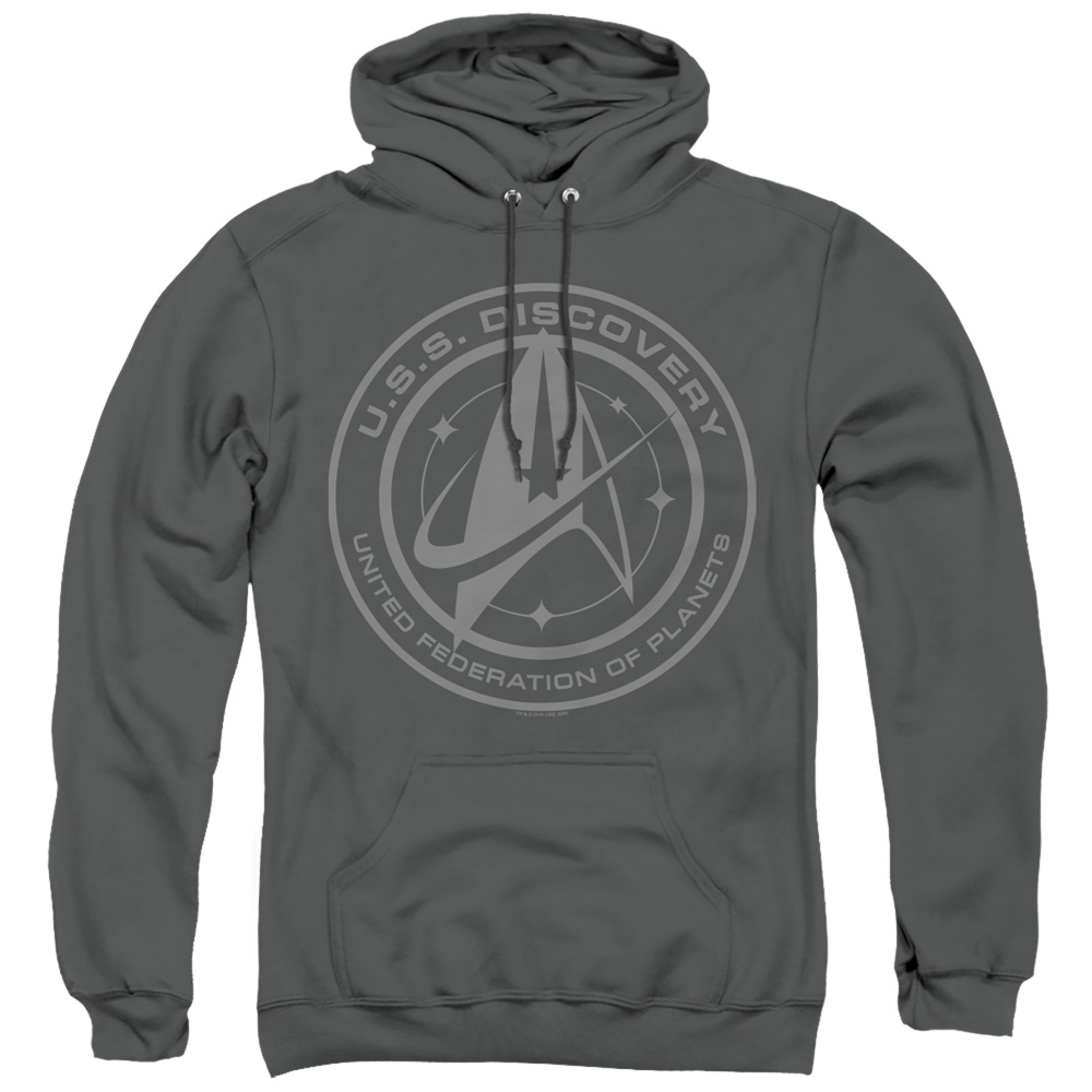 Trevco CBS2564-AFTH-4 Star Trek Discovery & Discovery Crest-Adult Pull-Over Hoodie, Charcoal - Extra Large