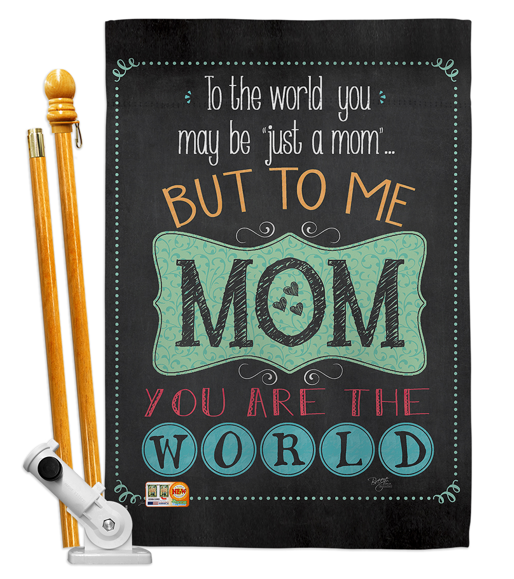 Breeze Decor BD-MD-HS-115122-IP-BO-D-US18-SB 28 x 40 in. The World Mom Summer Mothers Day Impressions Decorative Vertical Double Sided House Flag Set with Pole Bracket Hardware