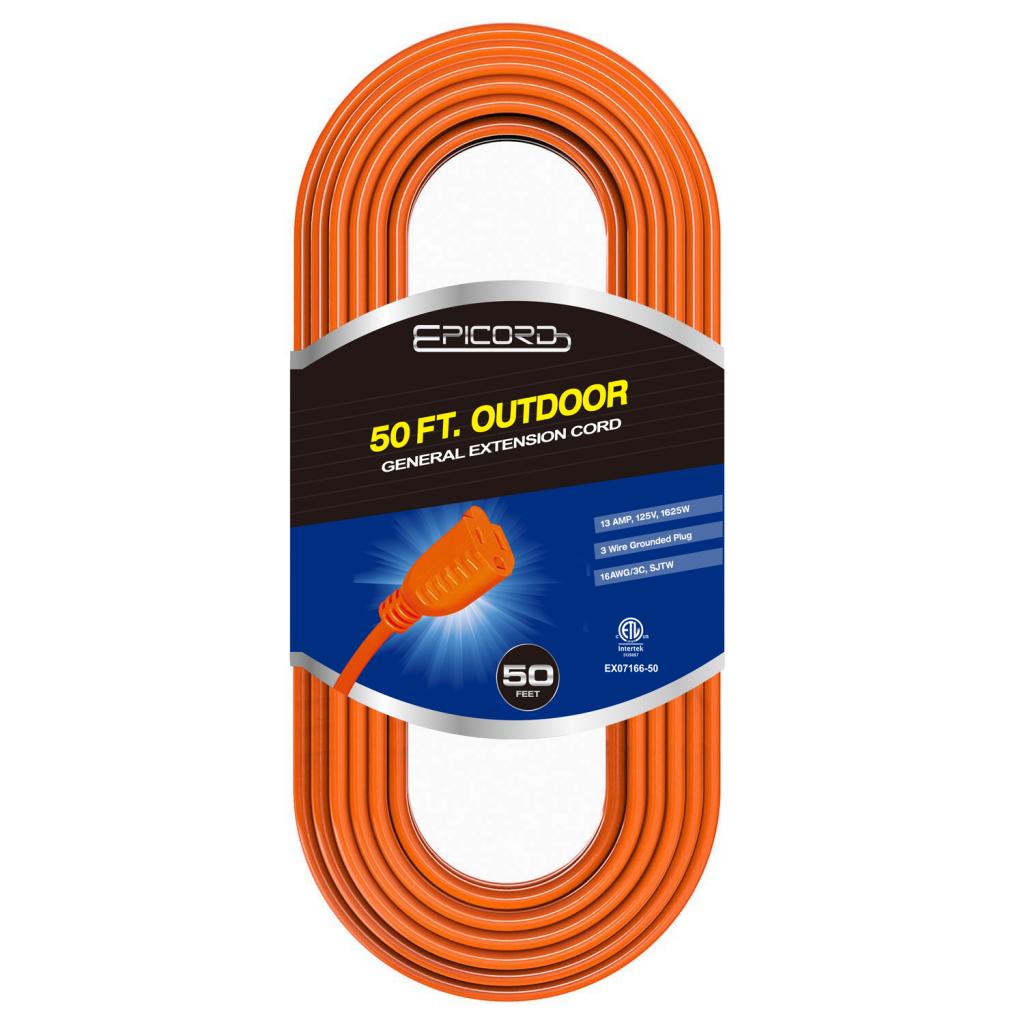 Epicord YH07166-50 50 ft. 16 Gauge & 3-Wire SJTW Outdoor Extension Cord, Black