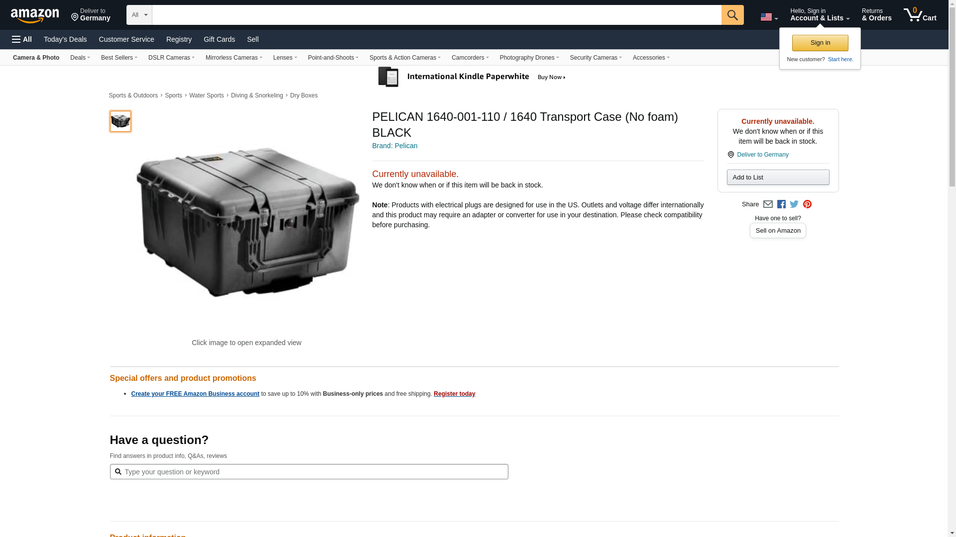 PELICAN 1640-001-110 / 1640 Transport Case (No foam) BLACK