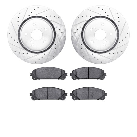 Dynamic Friction Company Front Brake Rotors Drilled and Slotted Silver with 5000 Advanced Brake Pads - 7502-75042