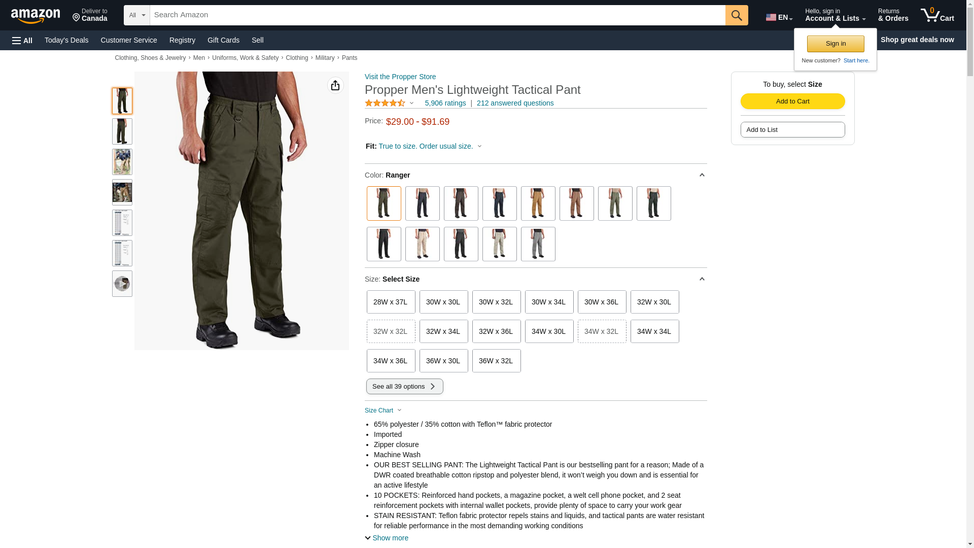Propper F5252 Ranger Lightweight Tactical Pant 65 % Polyester/35 % Cotton Lightweight Ripstop Ranger 30 in Waist 32 in Length