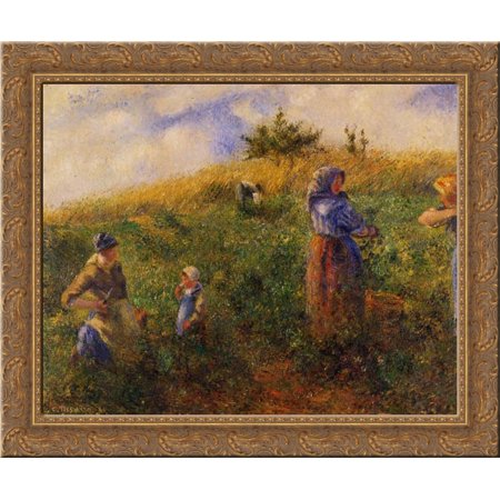 Picking Peas 24x20 Gold Ornate Wood Framed Canvas Art by Pissarro, Camille