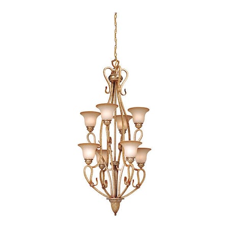 Berkeley 8L Chandelier Corinthian Patina with Waikiki Sand lass. Shade Included: Yes.