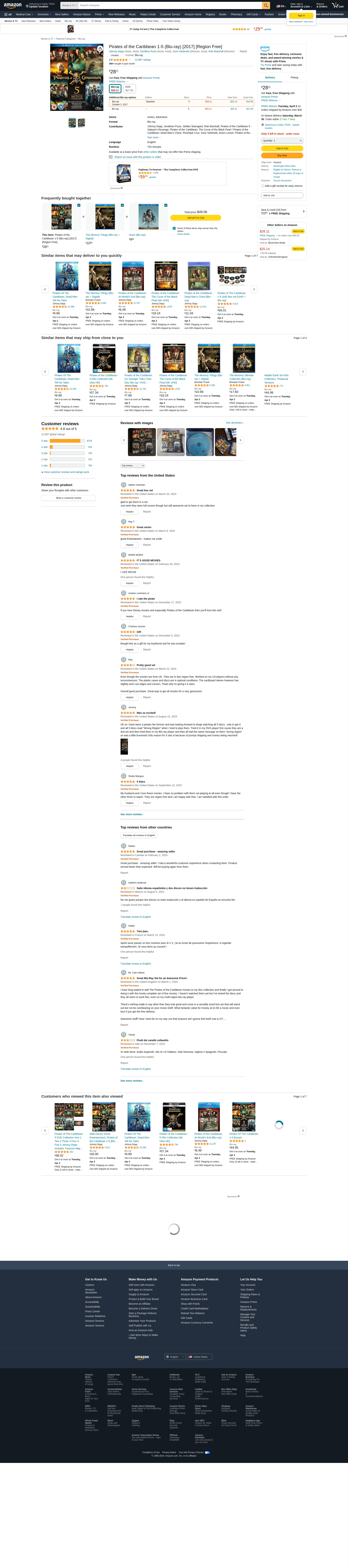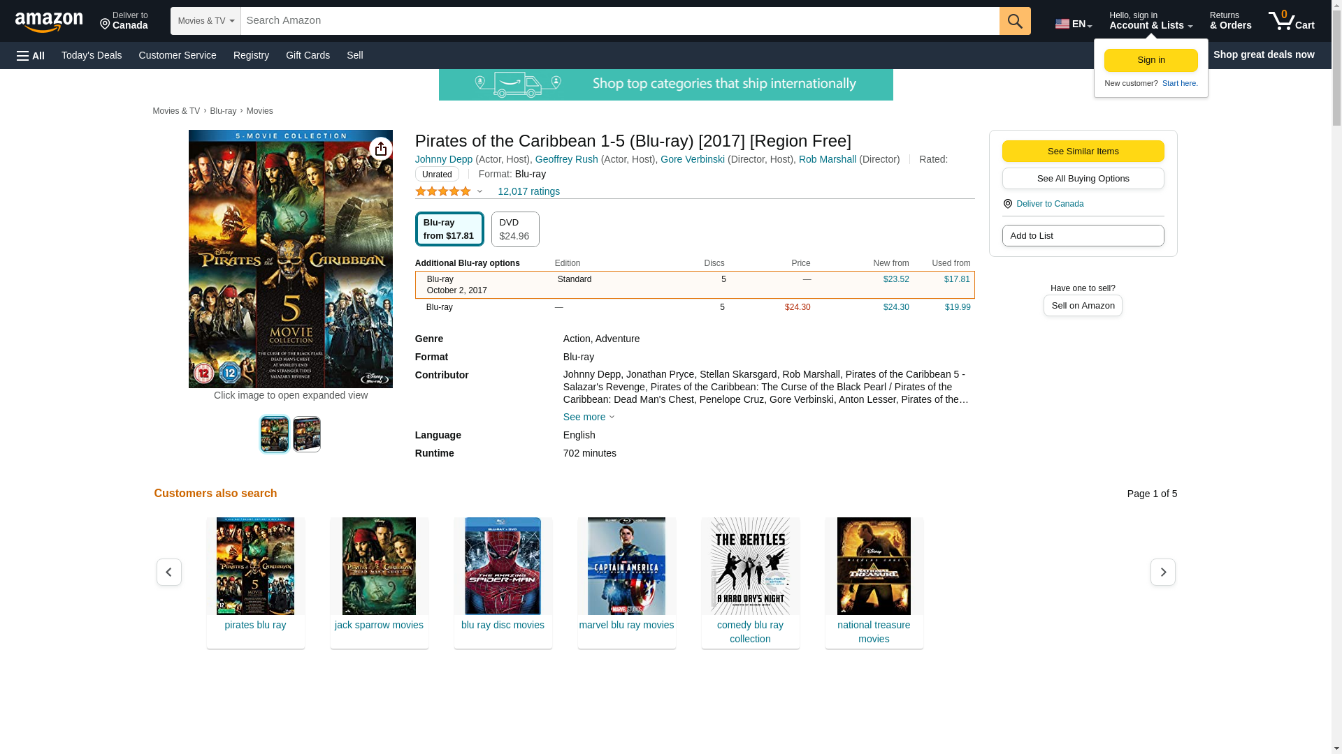 Amazon.com: Pirates of the Caribbean 1-5 (Blu-ray) [2017] [Region Free] : Johnny Depp, Geoffrey Rush, Orlando Bloom, Jack Davenport, Jonathan Pryce, Stellan Skarsgard, Penelope Cruz, ?scar Jaenada, Anton Lesser, Keira Knightley, Gore Verbinski, Rob Marshall, Pirates of the Caribbean Collection - 5-Disc Box Set ( Pirates of the Caribbean: The Curse of the Bl, Pirates of the Caribbean Collection - 5-Disc Box Set, Pirates of the Caribbean: The Curse of the Black Pearl / Pirates of the Caribbean: Dead Man's Chest, Pirates of the Caribbean 5 - Salazar's Revenge, Gore Verbinski, Johnny Depp, Geoffrey Rush, Orlando Bloom, Jack Davenport, Pirates of the Caribbean Collection - 5-Disc Box Set ( Pirates of the Caribbean: The Curse of the Bl, Pirates of the Caribbean Collection - 5-Disc Box Set, Pirates of the Caribbean: The Curse of the Black Pearl / Pirates of the Caribbean: Dead Man's Chest, Pirates of the Caribbean 5 - Salazar's Revenge: Movies & TV