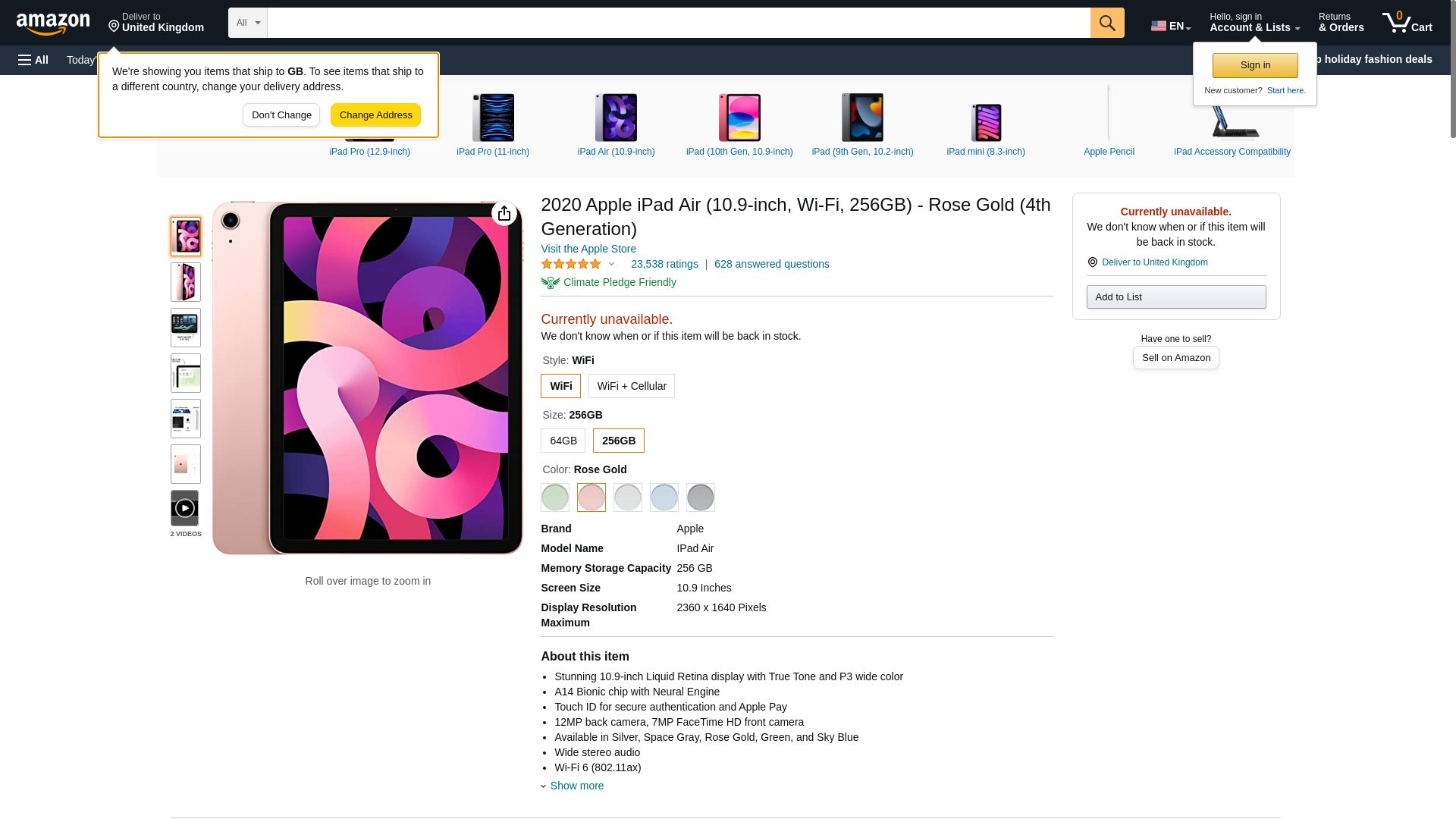 Apple 2020 iPad Air (10.9-inch, Wi-Fi, 256GB) - Rose Gold (4th Generation)