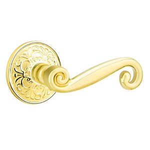Brass Classic Hardware Collection - Passage Right Handed Rustic Door Lever With Lancaster Rose