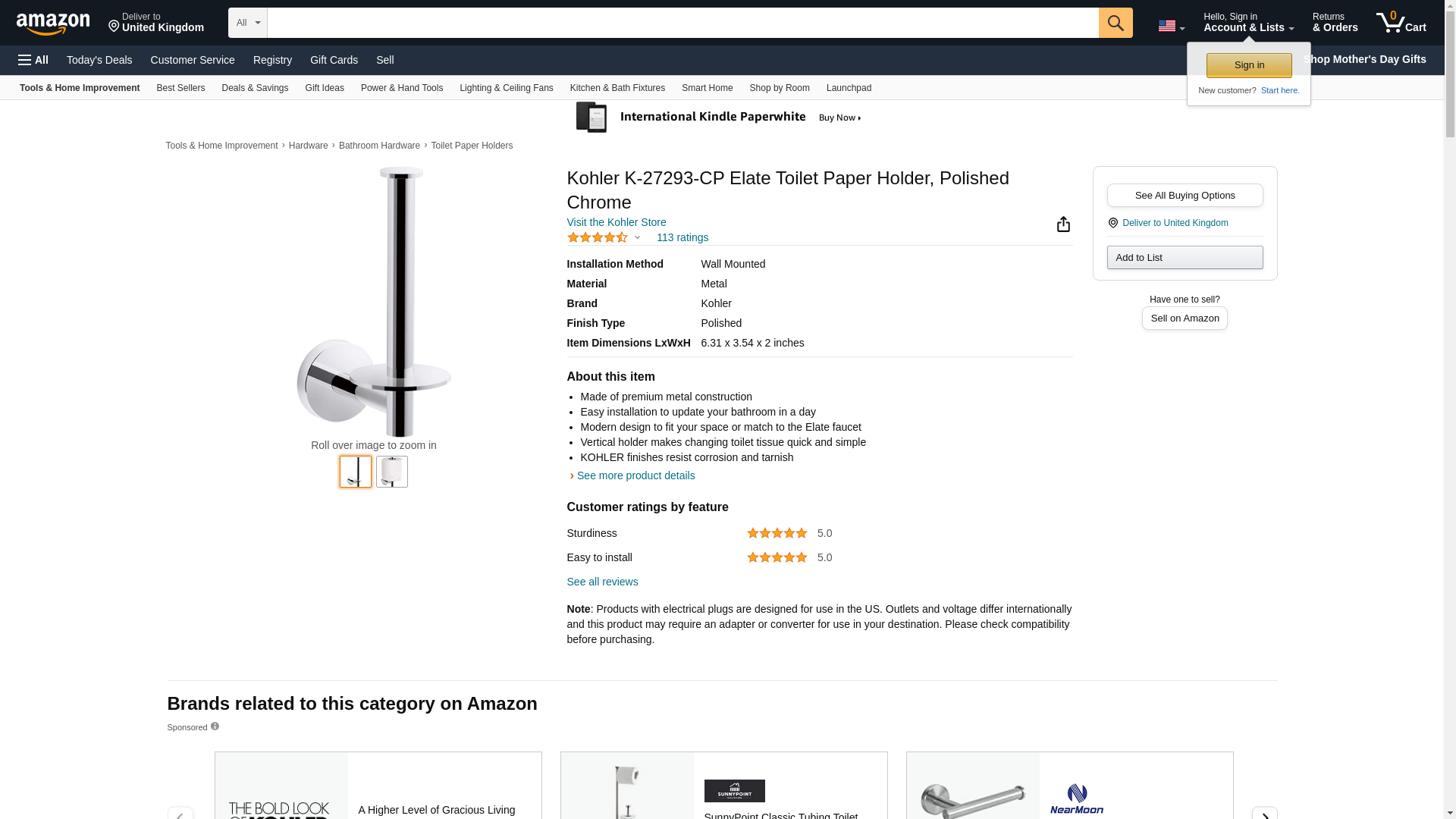 Kohler K-27293-CP Elate Toilet Paper Holder, Polished Chrome