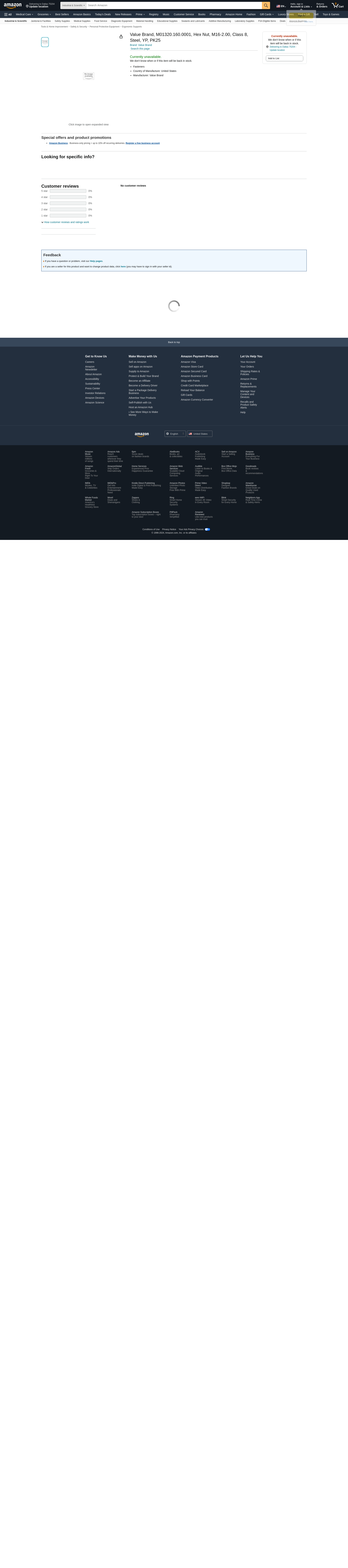 Value Brand, M01320.160.0001, Hex Nut, M16-2.00, Class 8, Steel, YP, PK25