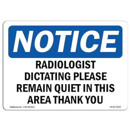 OSHA Notice Sign, Radiologist Dictating Please Remain Quiet, 10in X 7in Rigid Plastic