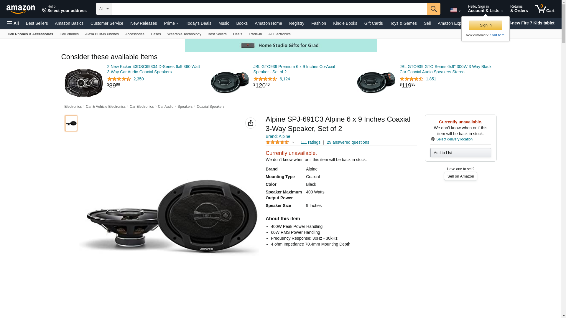 Alpine SPJ-691C3 Alpine 6 x 9 Inches Coaxial 3-Way Speaker, Set of 2