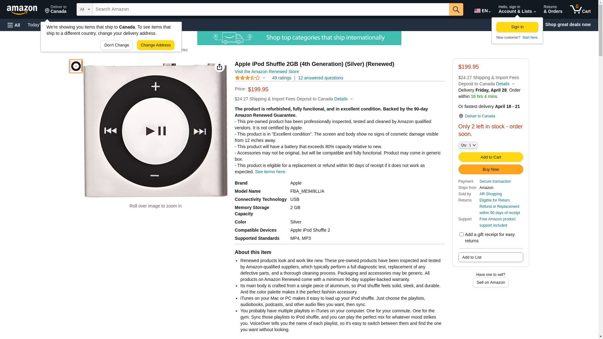 Apple iPod Shuffle 2GB (4th Generation) (Silver) (Renewed)