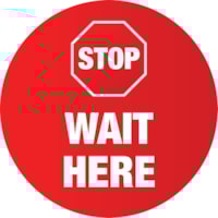 Sterling Social Distancing Floor Decal, English, Stop Wait Here, White on Red, 12" | Grand & Toy