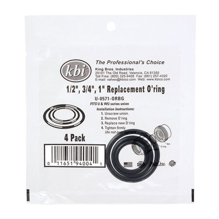 Kbi Union O-Ring Pack 1/2 ", 3/4 " & 1 " Bagged