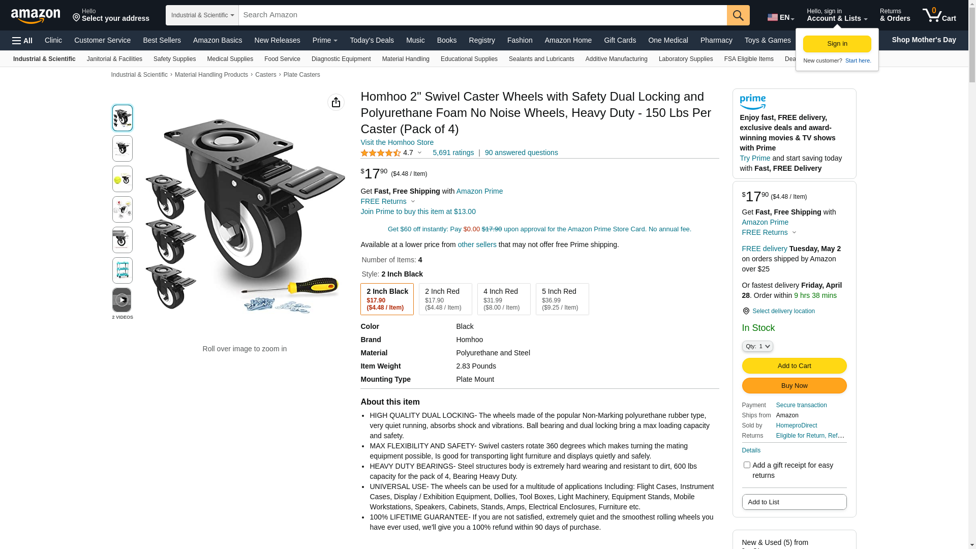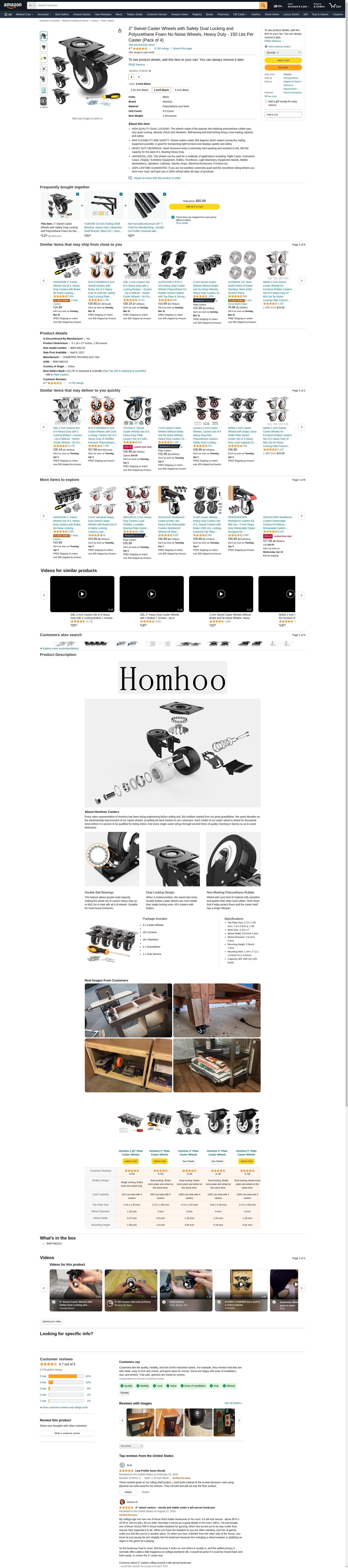 2" Swivel Caster Wheels with Safety Dual Locking and Polyurethane Foam No Noise Wheels, Heavy Duty - 150 Lbs Per Caster (Pack of 4)