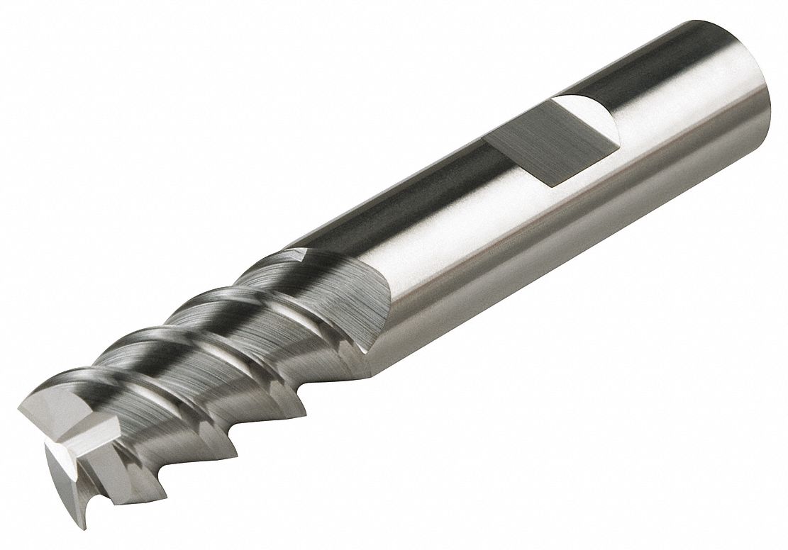 - The 3 flute geometry is ideal for roughing and slotting in all mild steel and stainless steels