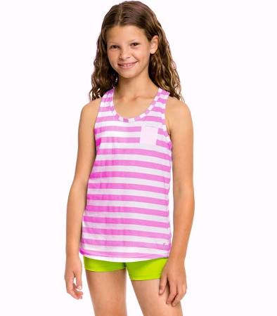 Soffe 2706G6FSXSM 3.4 oz Cotton Girls Pocket Tank, Neon Pink White Stripe & Rosewater - Extra Small