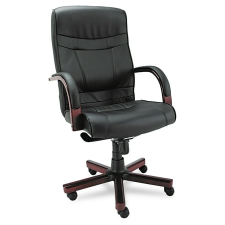Alera ALEMA41LS10M Alera Madaris Series High-Back Knee Tilt Leather Chair Wood Trim, Black/mahogany