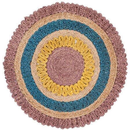 Natural Fiber Hand Woven Round Area RugLavender & Multicolor 7 x 7 ft.