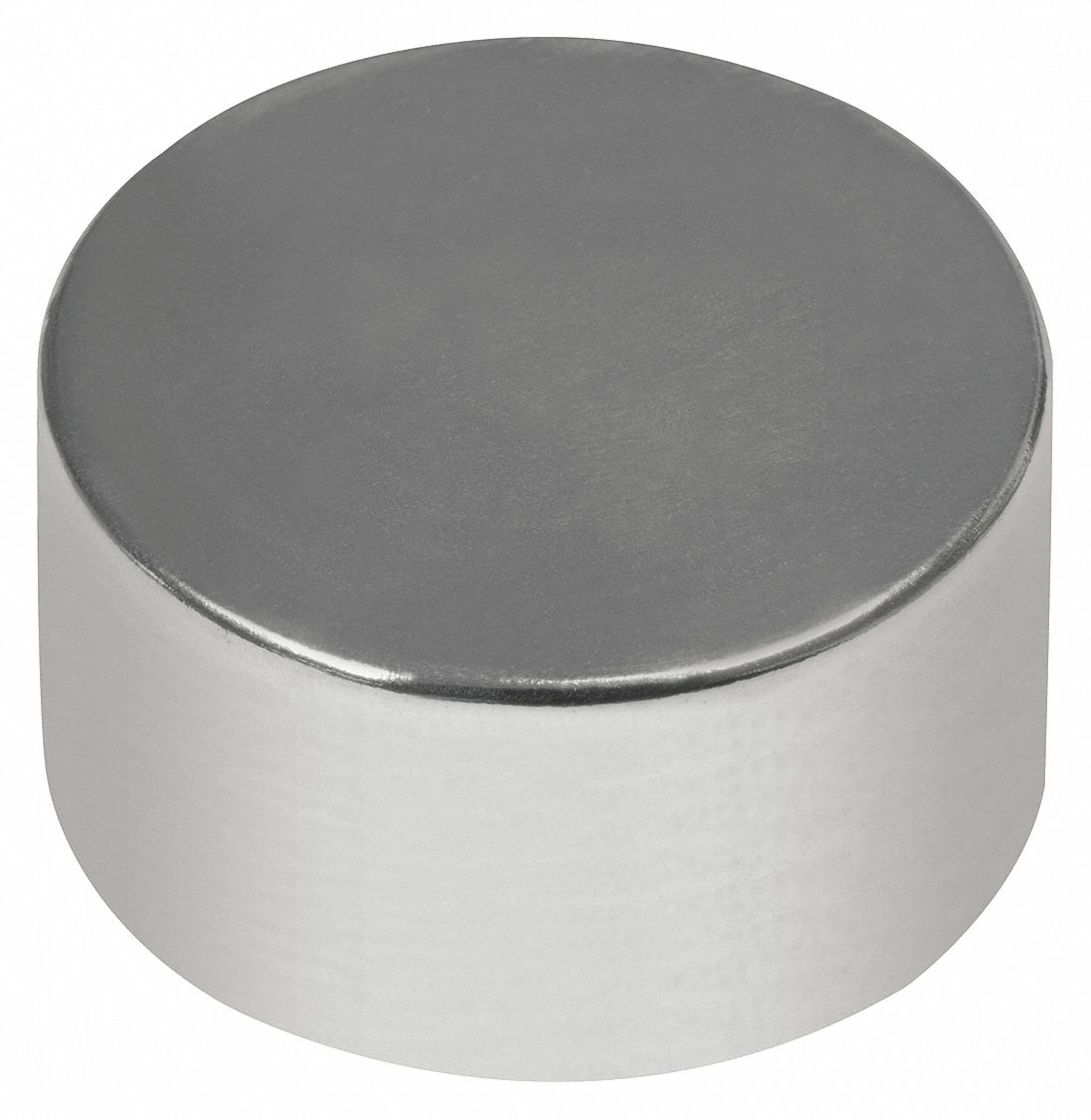 Disc Magnet, Material Grade 35 Neodymium, Casing Material Nickel Plating, Max. Pull 9 lb, Overall Length 13/64 in, Diameter 3/8 in, Stability Temp. 180 Degrees F