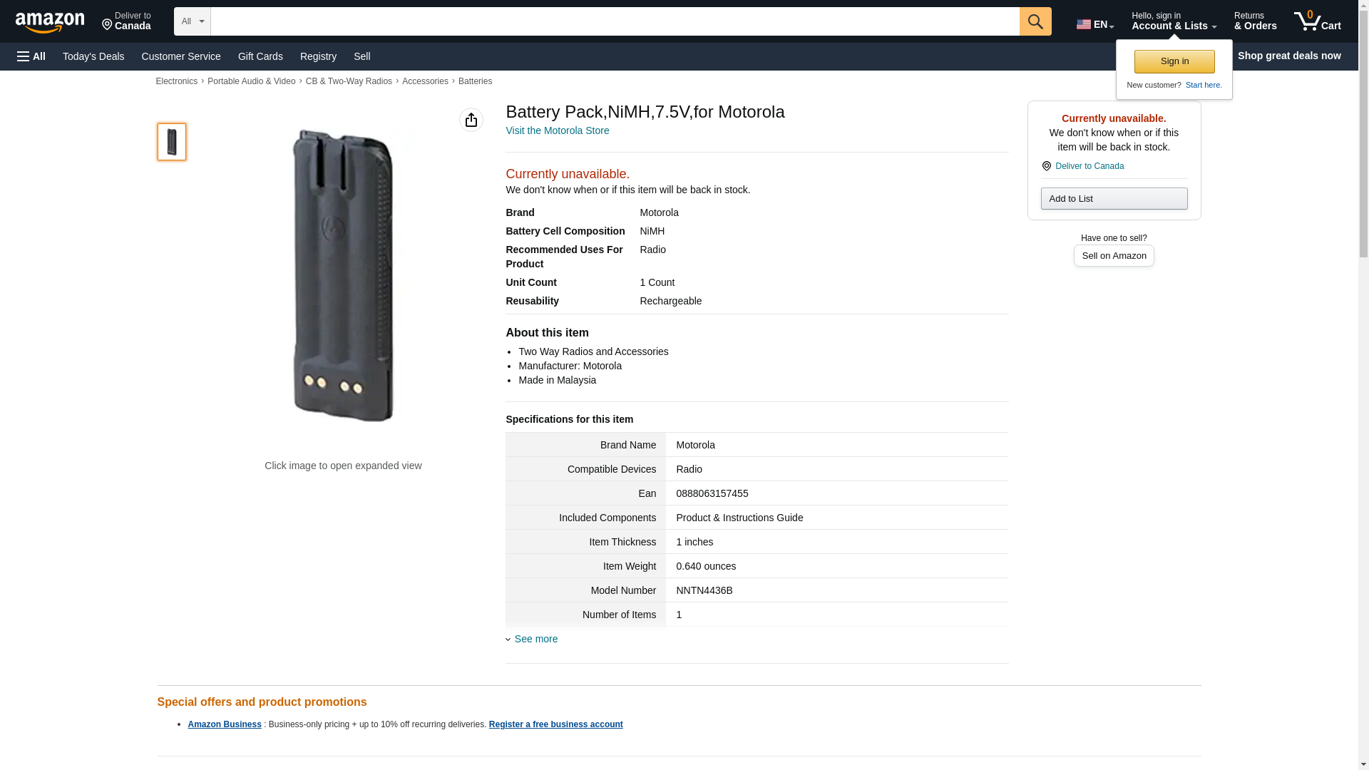 Battery Pack,NiMH,7.5V,for Motorola