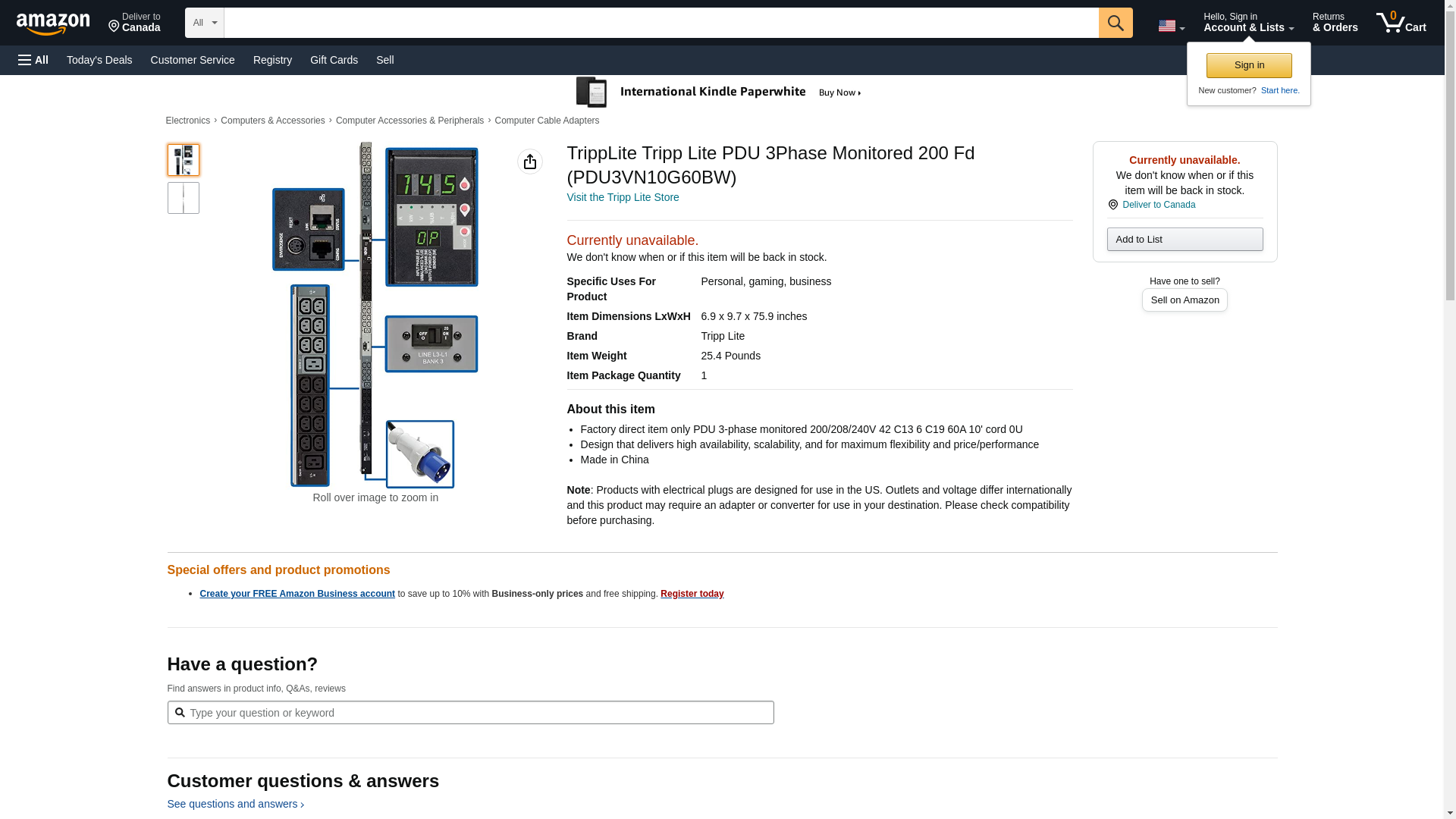 | Feature | "Factory direct item only PDU 3-phase monitored 200/208/240V 42 C13 6 C19 60A 10' cord 0U" |