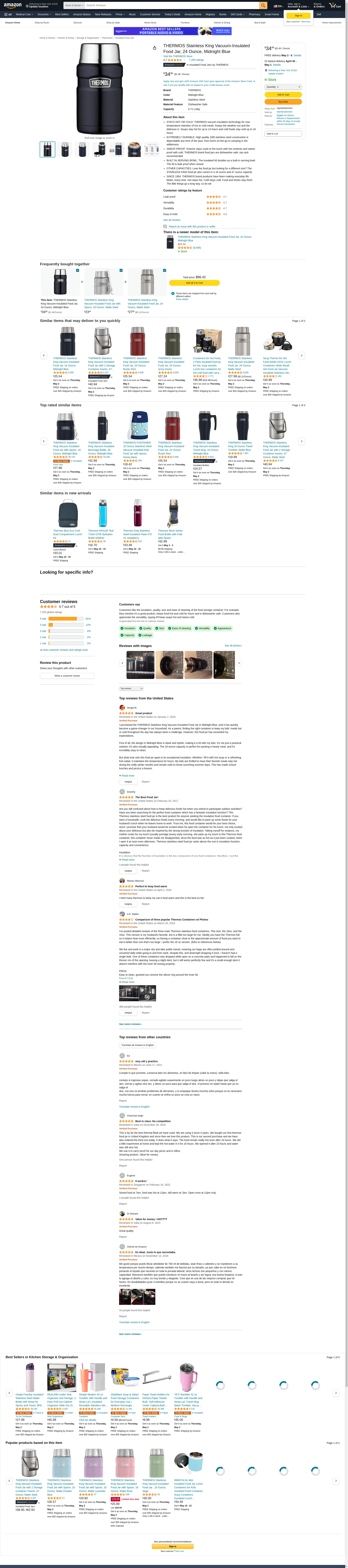 THERMOS Stainless King Vacuum-Insulated Food Jar, 24 Ounce, Midnight Blue