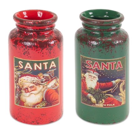 Pack of 6 Antique-Style Distressed Santa Claus Decorative Christmas Jars 6.5"
