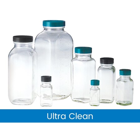 | Feature | Qorpak 2oz Clear French Square with attached 28-400 Green Thermoset F217 PTFE Lined Cap, Ultra Clean - QOR |