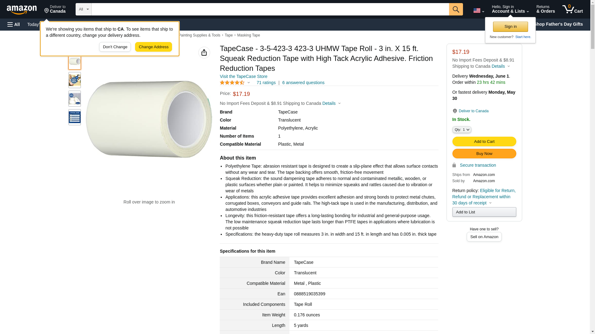 TapeCase, 3-5-423-3, Squeak Reduction UHMW Polyethylene Tape, High Tack Acrylic Adhesive, Translucent, 3 in x 15 ft, 1 Count