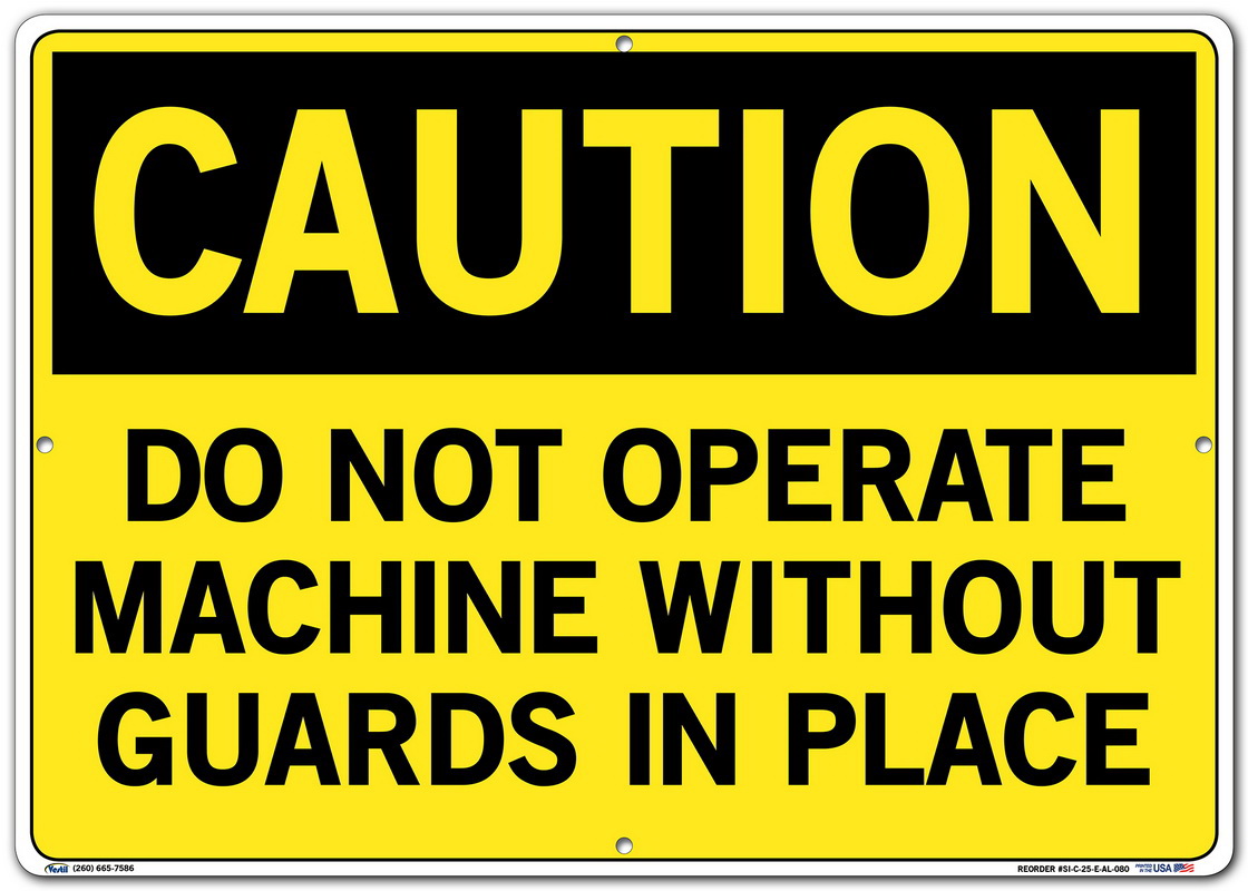 Vestil SI-C-25-E-AL-080 DO NOT OPERATE MACHINE WITHOUT GUARDS IN PLACE Caution Sign, Aluminum, 0.080" Overall Size, 20.5" W x 14.5" H