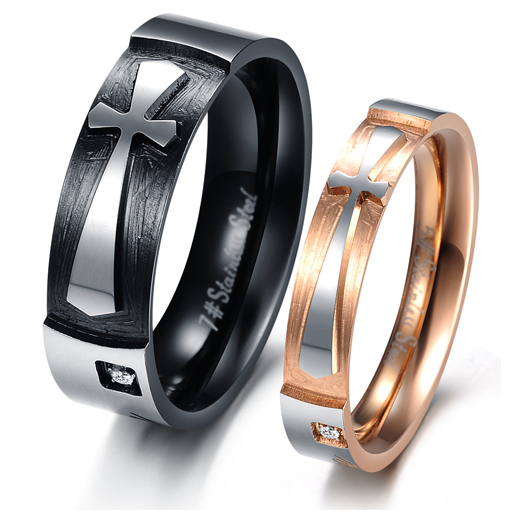 CET Domain SZ17-R136W-8 Titanium Steel Pure Love Couple Rings- Women-Size 8