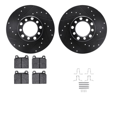 8612-63013, Rotors-Drilled, Slotted-Black w/ 5000 Euro Ceramic Brake Pads incl. Hardware, Zinc Coat