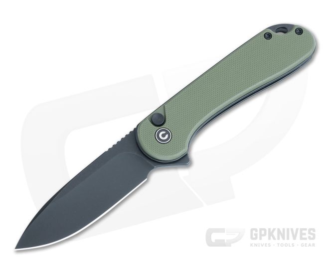 CIVIVI Button Lock Elementum Flipper Black Stonewashed Nitro-V Blade with OD Green G10 for Sale