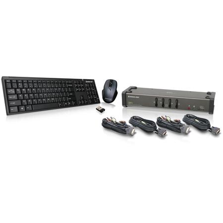Iogear 4-Port Dvi Kvmp Switch Usb Console, Usb Peripherals, Audio & Wireless Keyboard (Taa) - GCS1104-KM1