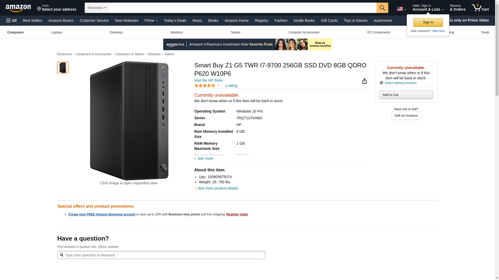 Smart Buy Z1 G5 TWR I7-9700 256GB SSD DVD 8GB QDRO P620 W10P6
