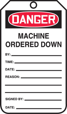 Order MDT137LTM by Accuform HS-Laminate Tag "Machine Ordered Down" - US Mega Store