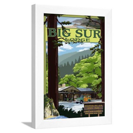 <ul> <li>Title: Big Sur Lodge, California</li> <li>Artist: Lantern Press</li> <li>Paper Type: Art Print</li> <li>Product Type: Framed Art Print</li> <li>Framed in SOHO White</li> <li>Arrives ready-to-hang for fast, simple installation</li> <li>Framed Size: 12x17 in.</li> <li>Handcrafted in the USA</li> </ul>