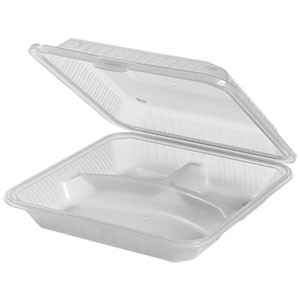 These to go containers help the environment and save on unnecessary waste. Durably constructed of polypropylene material each 9" x 9" x 2 3/4" box can be heated in the microwave safely. These clear to go containers can also be washed in a dishwasher and reused. The 3 compartment box has no BPA keeping food chemical free.