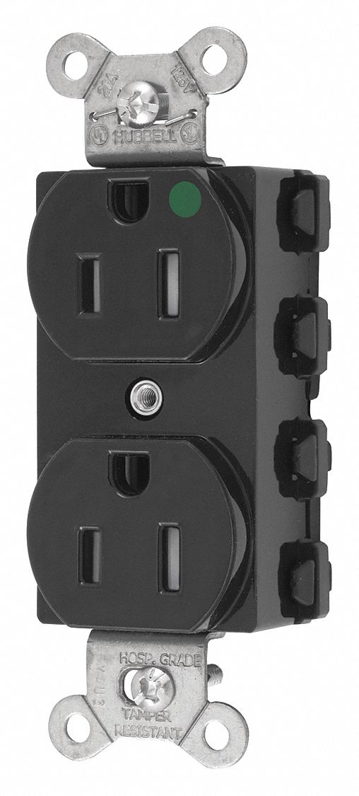 - The product type is Straight Blade Devices, Tamper Resistant, Duplex Receptacle, Hospital Grade, SNAP-Connect, Split Circuit, 15A 125V, 2-Pole 3-Wire Grounding, 5-15R, Black