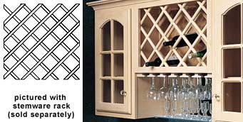Bottle Opening Size: 4" X 4". Height: 24". Key Features: Glued & mechanically fastened at joints. Produced from sturdy moldings. Can easily be cut to desired size. Number of Full Bottle Openings: 28. Product Type: Wine Rack Lattice Panels. Sold: Per Pair. Width: 43". Wood Species: Maple.